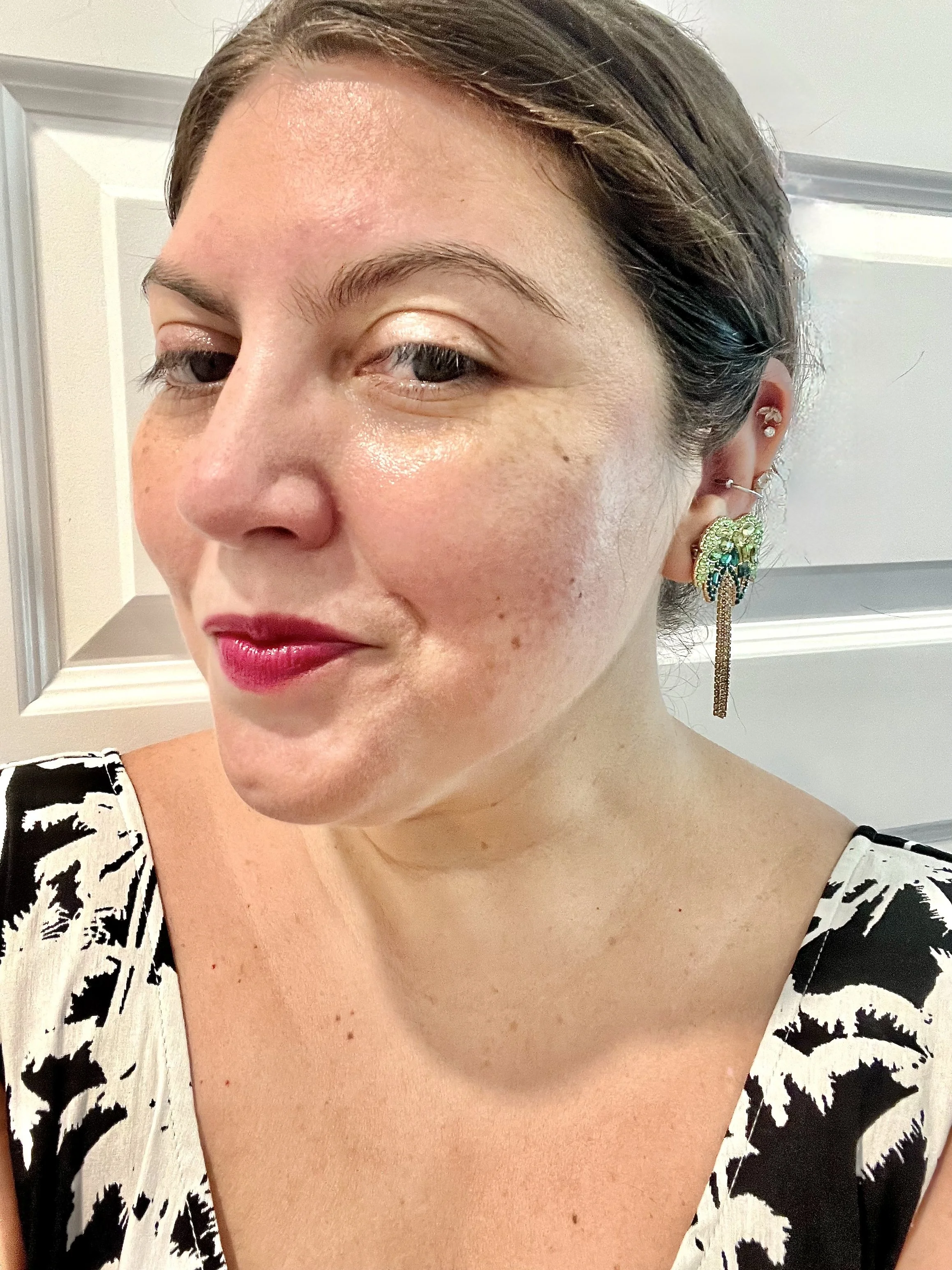 Look 2: Palm Tree Dress from La Vie Style House; Palm Tree Earrings from Target (old)