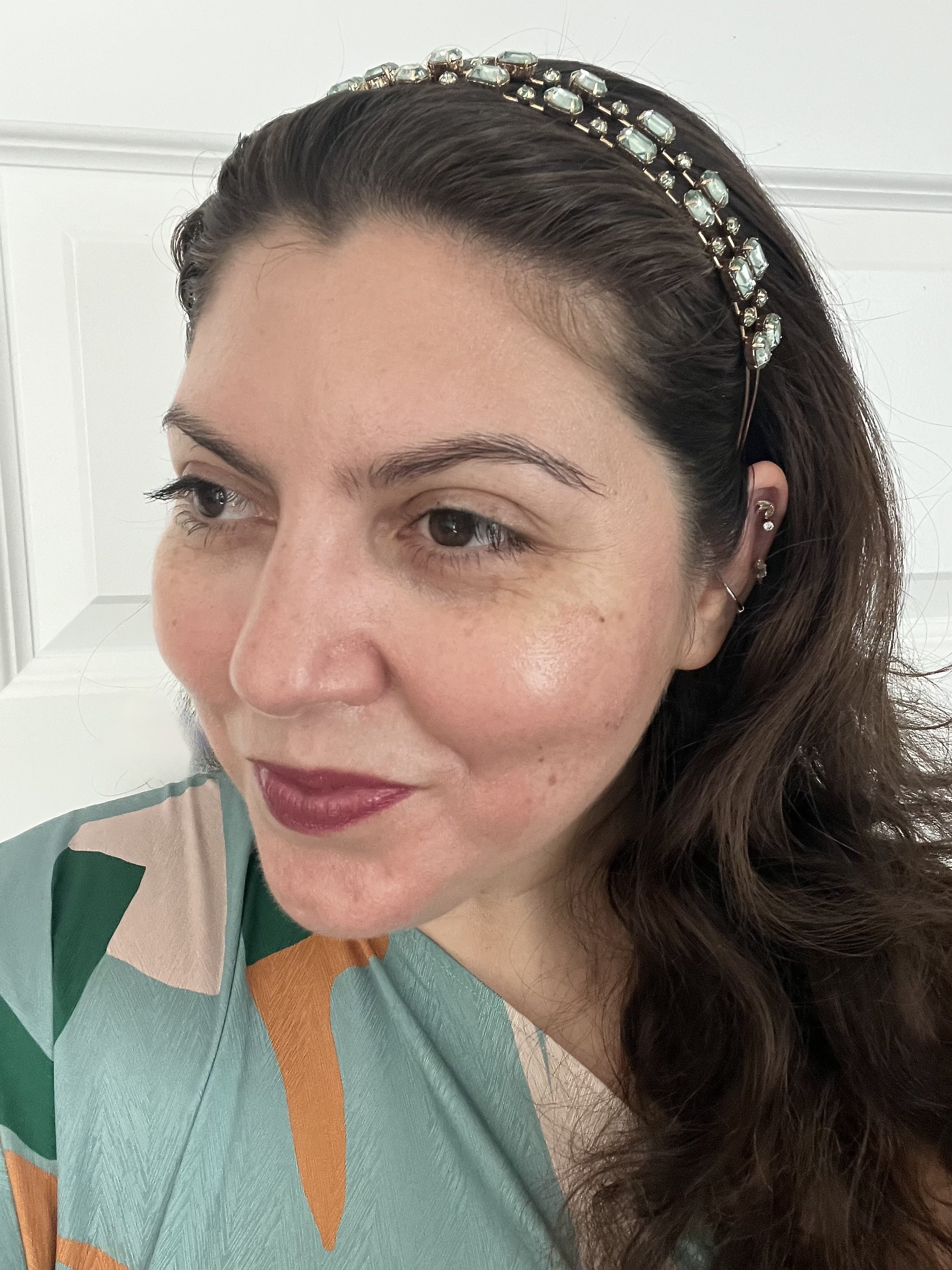 I love a good headband! It’s such an easy way to add glamour to your hairstyle. As someone who loves a shortcut when it comes to hairstyling, I have bands in multiple colors. They also draw attention to the face : ) There are some great options right now for not a lot of money — a definite plus!