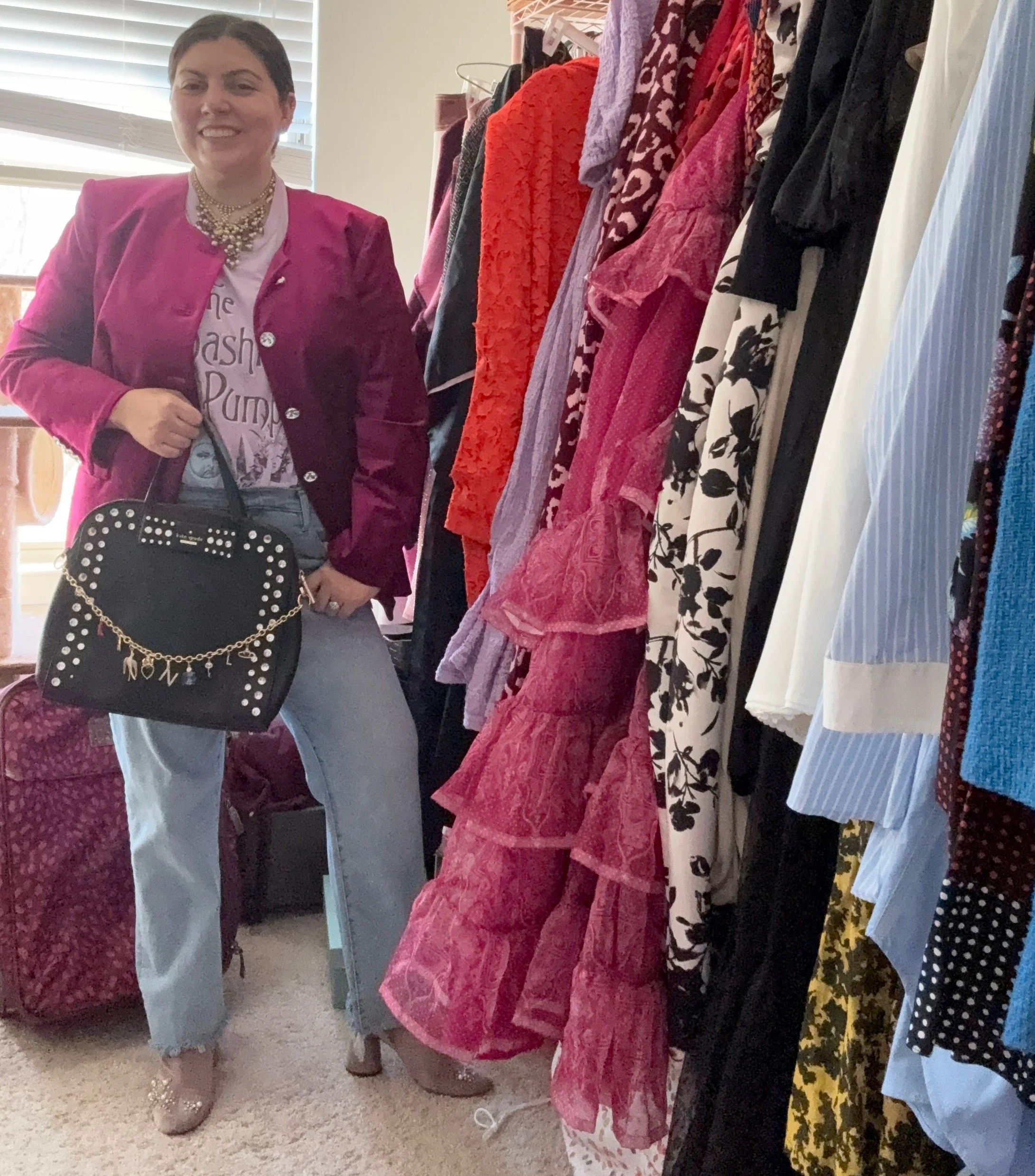 Blazer: Veronica Beard; T-shirt: Nordstrom; Jeans: Kensie (thrifted!); Boots: Zara (old); Purse: Kate Spade (old); Jewelry: Vintage plus LoLo Jewels