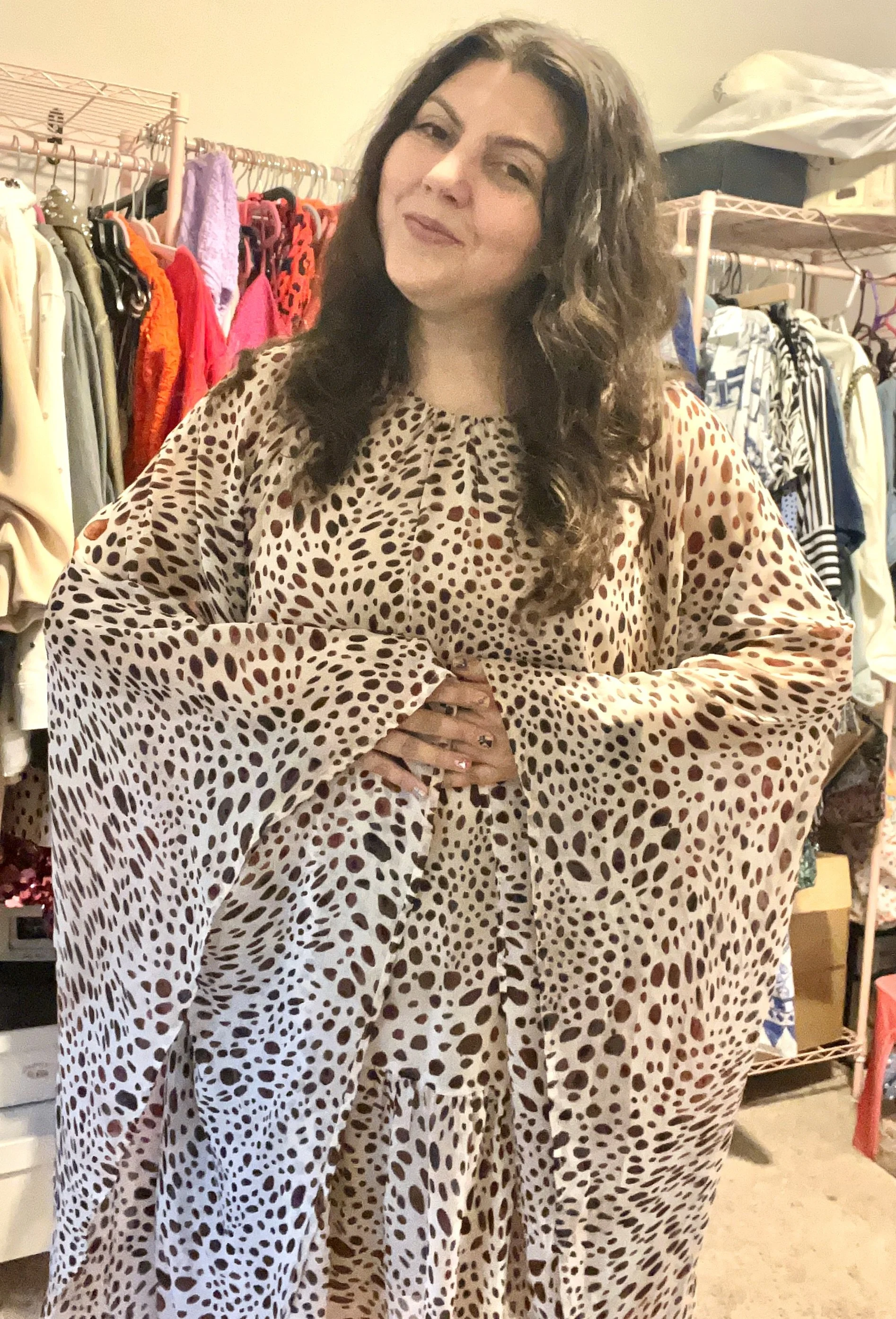When I saw this dress on the brand’s website I knew it had to be mine. The sleeves are pure drama and the dress is SO comfortable! I finally wore it for a concert in Fort Worth, paired with my trusted cowboy boots. The dress is pretty much sold out, but the print is available on a body con style dress. If you want to have fun and get compliments, shop Avec Les Filles!