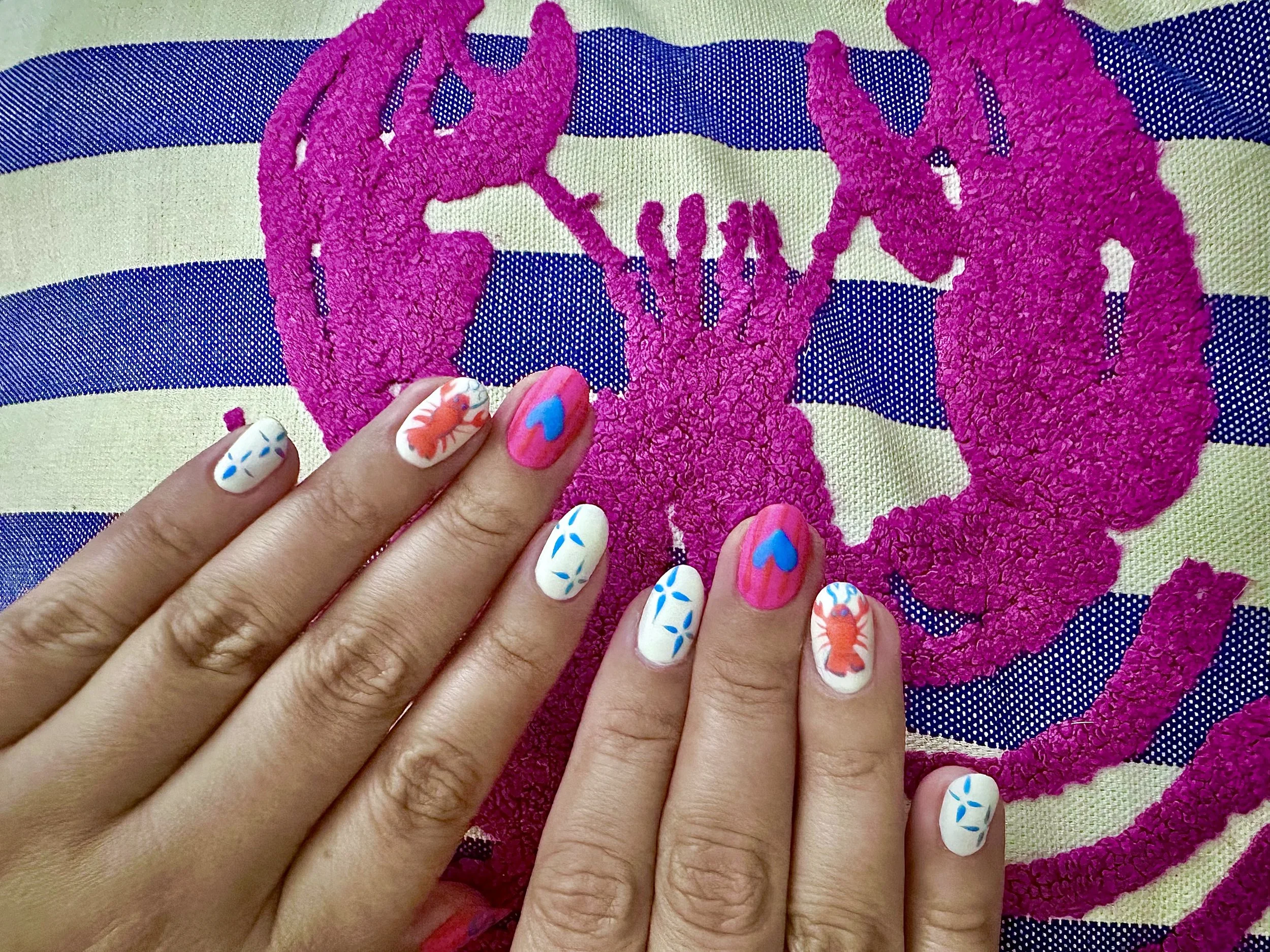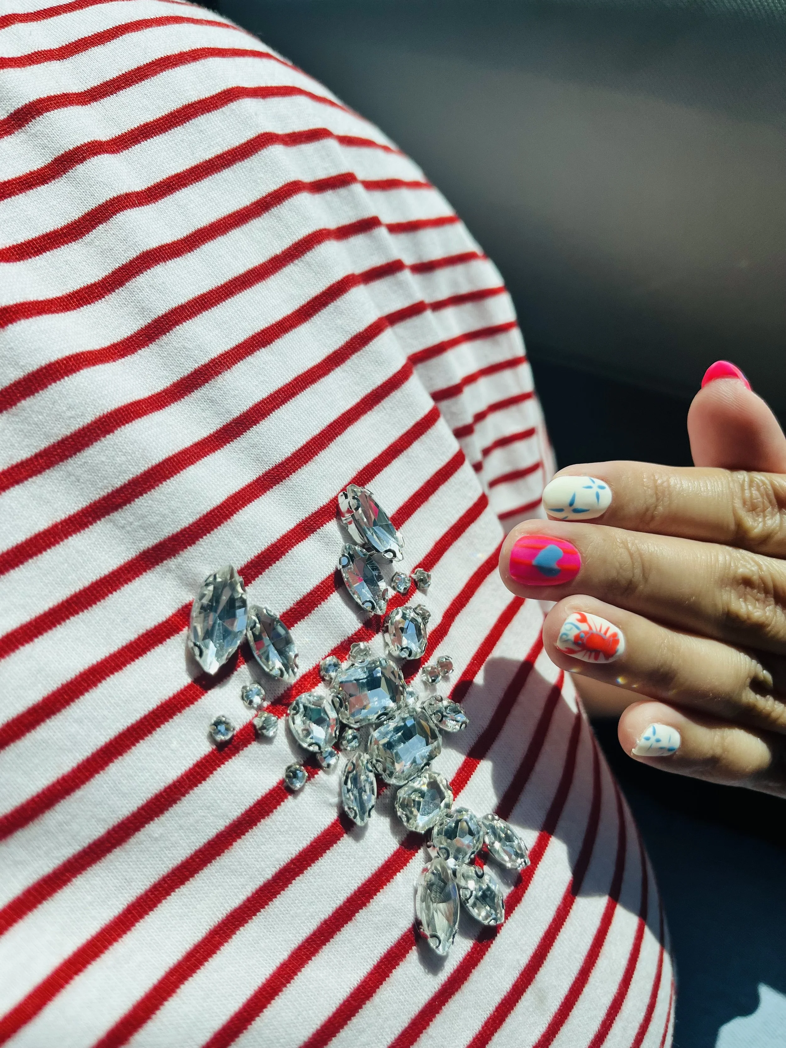 One of my favorite accessories is nail art. A manicure ALWAYS makes everything (especially an outfit) better! Ashley of Not Just a Manicure Blog designed this set based on a bunch of pictures because she is a genius! Make sure and check out her blog and Insta for more nail inspo.